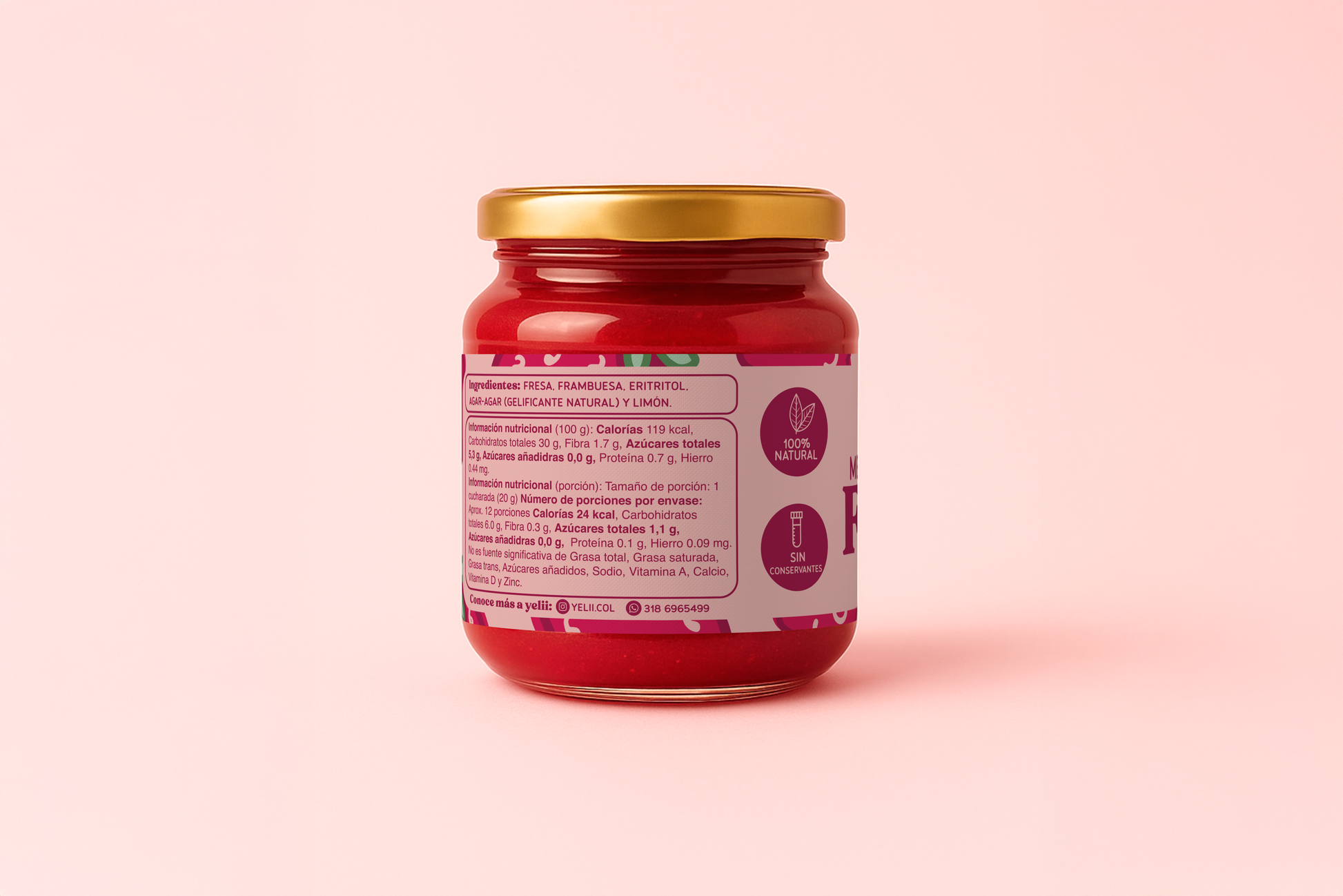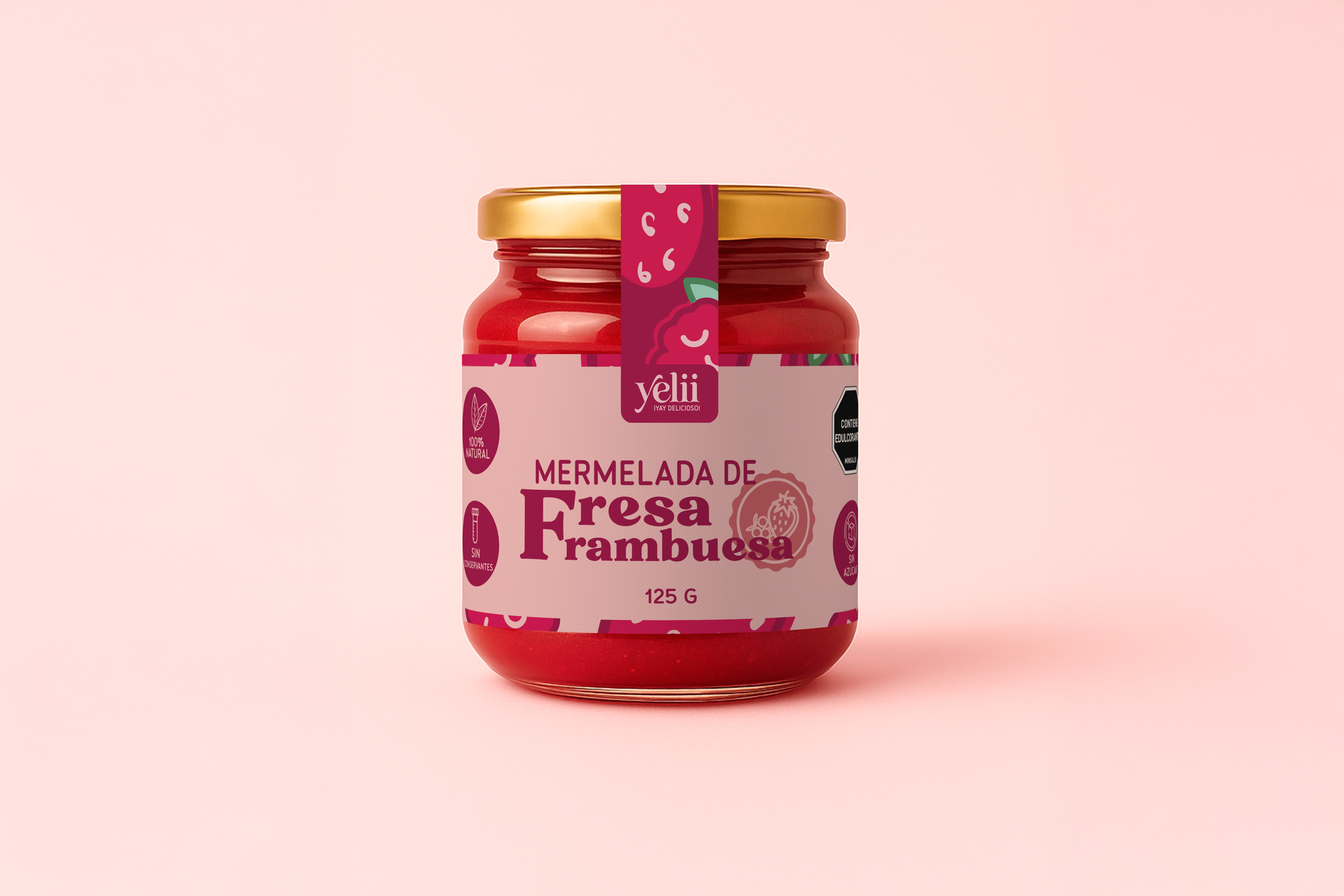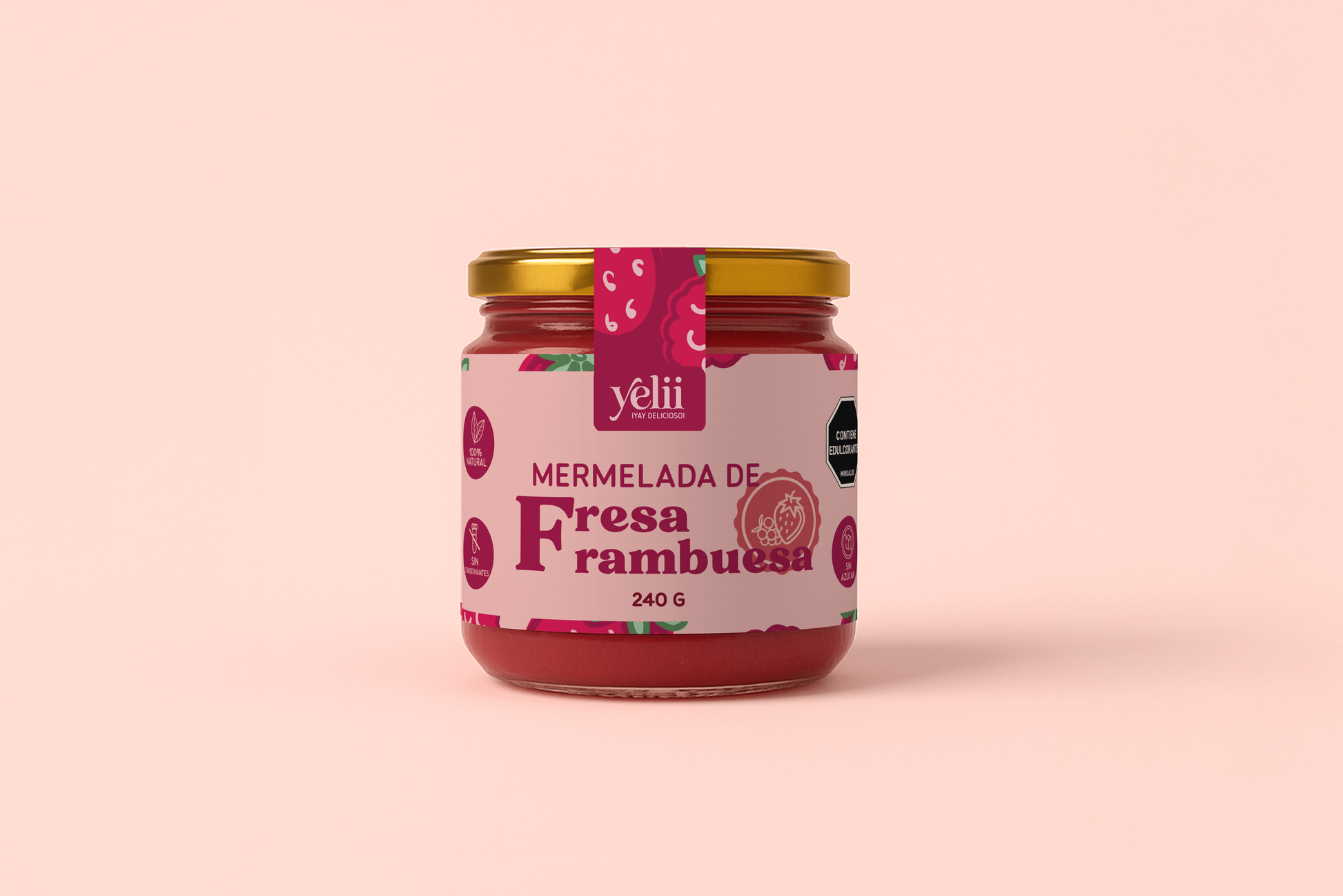 Nuestra Yelii de fesa y frambuesa, es una mermelada 100% natural, hecha con frutas reales, sin azúcar añadida con un sabor tan deli que no parece verdad. Esta Yelii solo tiene 5 ingredientes: fresa, frambuesa, eritritol (endulzante), agar agar (gelificante natural) y limón.
